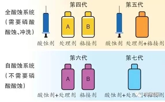 19、新的并不一定意味着更好。从临床表现来看,第四代材料(三步法全酸蚀 - Three-step etch-and-rinse)比第七代材料(一体化自酸蚀 - All-in-one self-etch)更好。