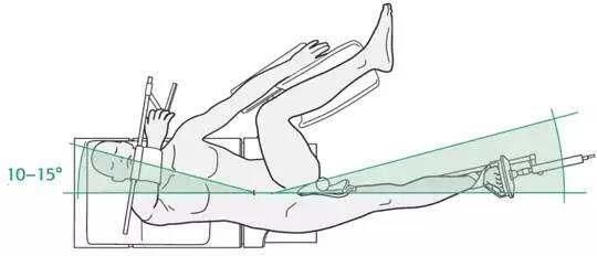 3.牵引复位,必要时器械辅助复位或者切开复位,透视确认位置;牵引过度导针骨盆旋转,正确的牵引方法是内收位水平牵引,然后下肢内旋复位。