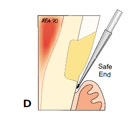 中—— 损害深度在牙本质中层或深层。遇到冷热酸甜等刺激时会有明显的不适或激发痛。临床检查可见典型的表现:缺损大致由两个颊面组成,口大底小,缺损处质地坚硬,表面光滑,边缘整齐,无染色或轻度染色。