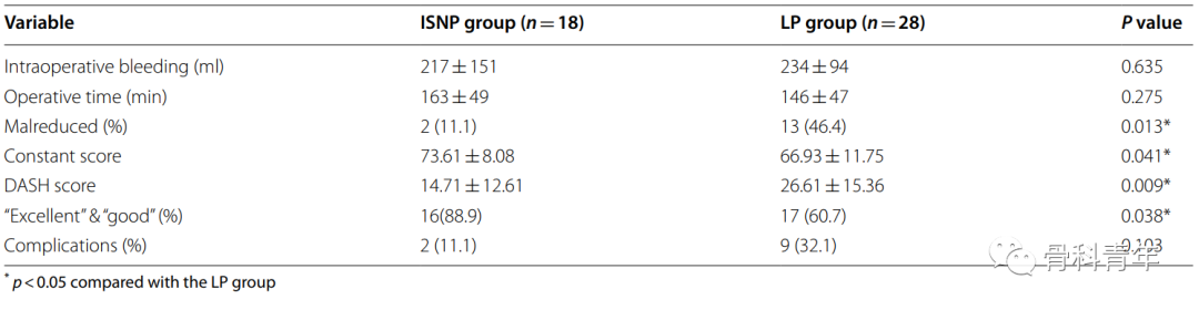 该研究团队对采用ISNPs系统与传统PHILOS固定进行了对比,结果表明ISNPs在降低复位不良率,改善功能和降低并发症方面均存在优势。