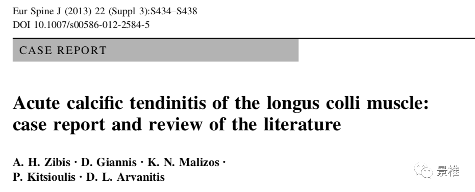 急性颈长肌钙化性肌腱炎是一种晶体异常沉积的无菌性炎症,主诉为急性颈后疼痛、颈部僵硬、斜颈、吞咽疼痛。