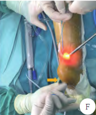 图F. 将屈肌腱反折端拉入跟骨止点骨道内,调整张力适中,用挤压螺钉固定