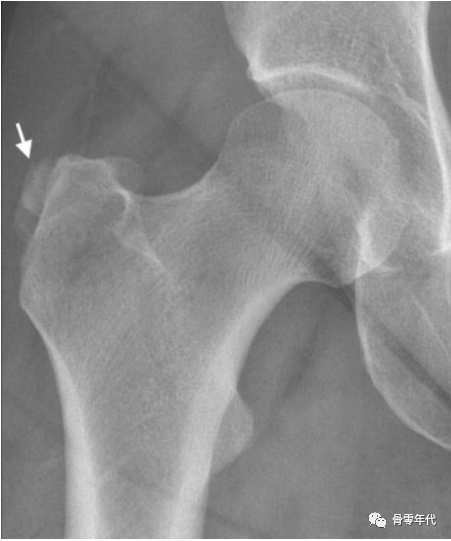 在这位27岁患有凸轮撞击的女性患者中,在脂肪饱和质子密度加权冠状关节造影术中,轻微的转子周围高信号(箭头)是一种常见的表现,没有大转子疼痛综合征。