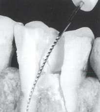 与前牙一样,在术前X线片上测量髓室顶的距离,穿通的距离仅限于此范围内。如果到这个深度时没有感觉到落空感,在进一步深入髓腔之前必须仔细评估穿通角度。在多根后牙中,在开髓过程时如果不注意3D方向的细节,可能会很快发生侧穿或底穿。与前牙一样,在开髓过程中应随时使用根管探针进行探查,通常可以帮助定位髓室的位置。