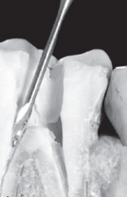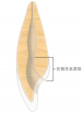 当洞形外部轮廓制备完成后,车针方向即转为垂直于舌侧表面。