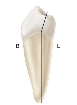 下颌前磨牙牙冠相对于牙根向舌侧倾斜