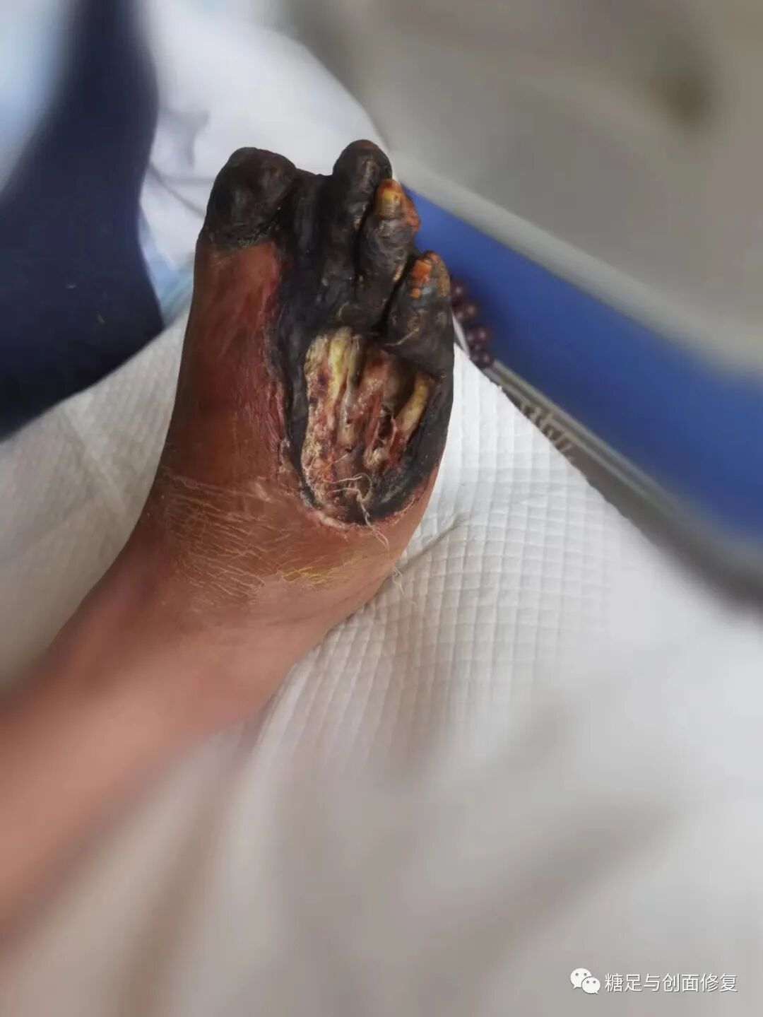 沟通病情,做好防护,严密观察另一侧肢体,特别是足部