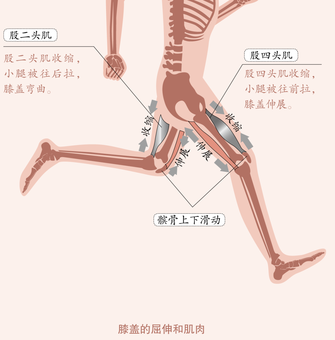 而负责膝关节动作的肌肉主要有两类,分别是伸直膝盖的股四头肌以及弯曲膝盖的股二头肌。