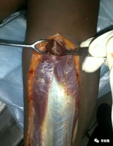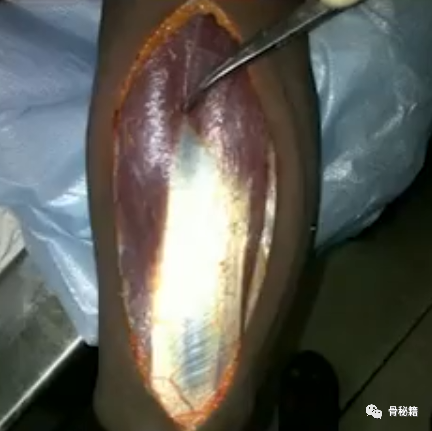 第一步,后方入路,找到三头肌的肌腱腹交接点