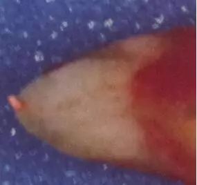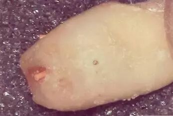 正面看,孔边缘是金属的,方便切割修整牙胶尖尖端的锥度。