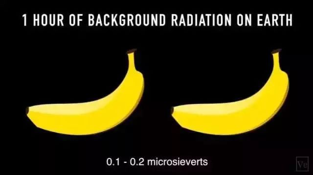 为了帮助大家更容易理解,我们用单位面积内的香蕉数量表达辐射强度。之所以选择香蕉,是因为香蕉富含钾元素,天然钾当中约有0.0117%的放射性钾——钾40,而钾40的半衰期长达12亿5千万年(地球岁数大约45亿年)。