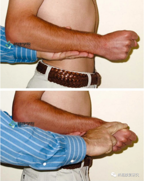 检查时,检查者嘱患者患侧上肢屈肘到90度,然后最大限度地握紧拳头。
