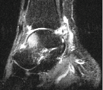 MRI检查:可以清楚显示踝关节周围软组织、韧带、软骨、骨结构的改变,对踝关节损伤严重程度和滑膜病变做出良好判断,为踝关节撞击征的诊断提供重要参考依据。