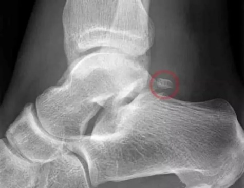 (X线片检查可见后踝部位出现骨赘增生,在踝关节跖屈位会出现后踝的撞击)