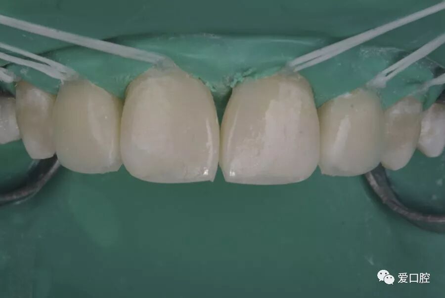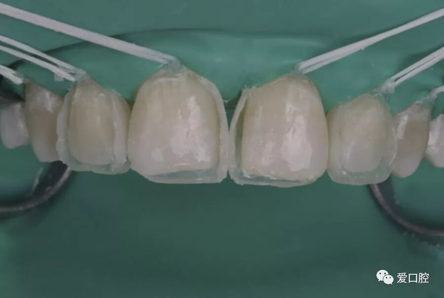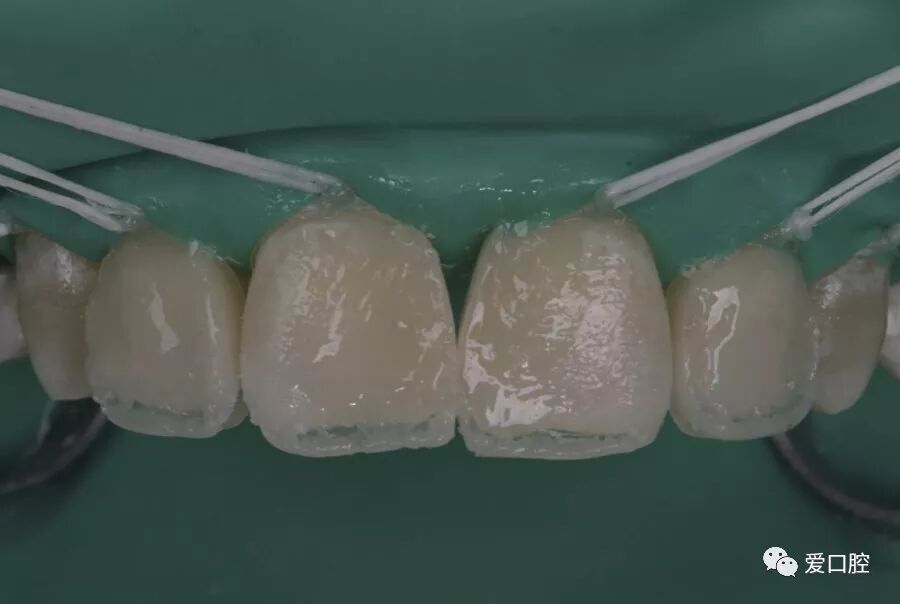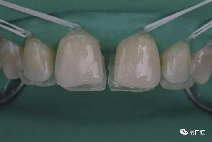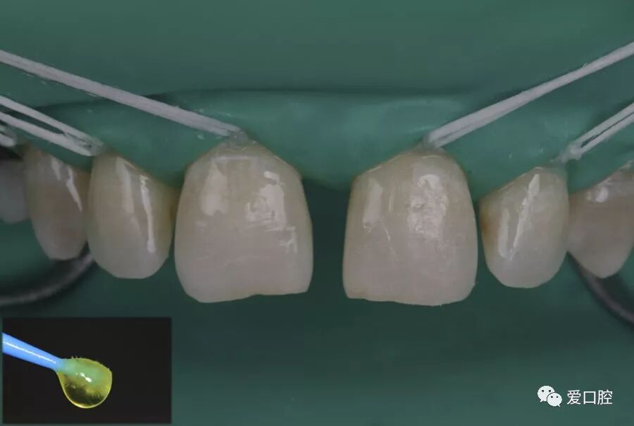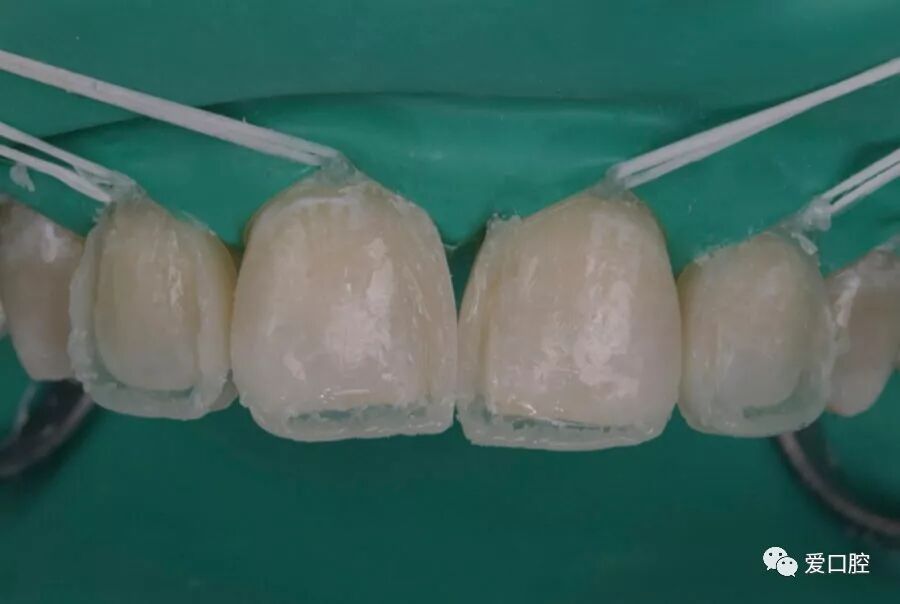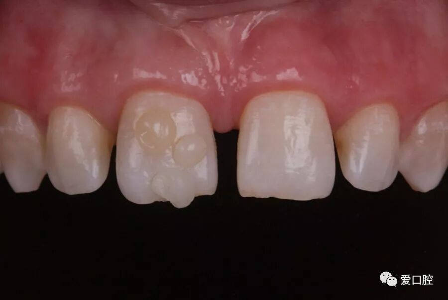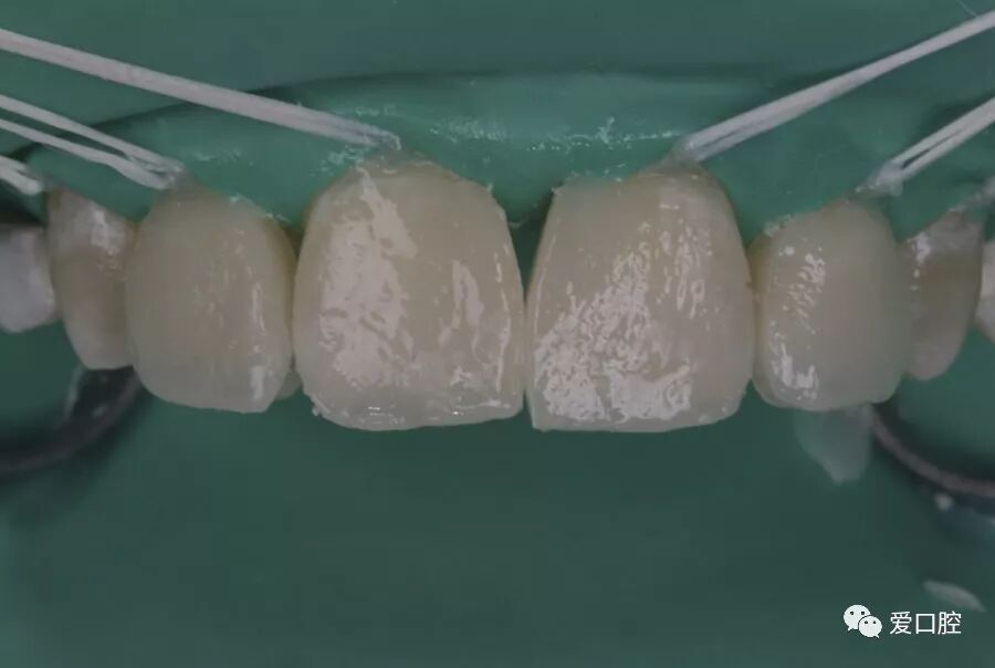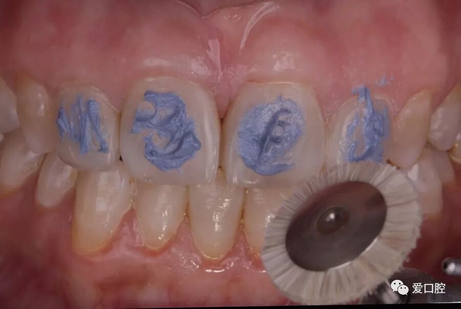 ▲去除腭侧正畸弯制的弹簧后,用复合树脂修复直接进行修复阶段。在橡皮樟隔离之前,必须进行颜色匹配和分析; 否则,通过选择比适合的更白的颜色,修复完成后,那就尴尬了,所以,修复前一定比好色,比好色,比好色,重要的事说三遍