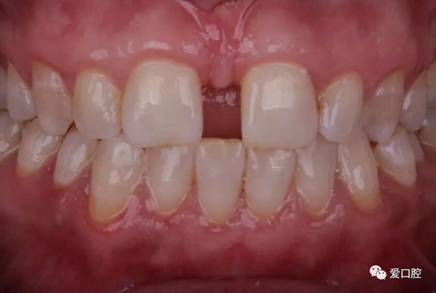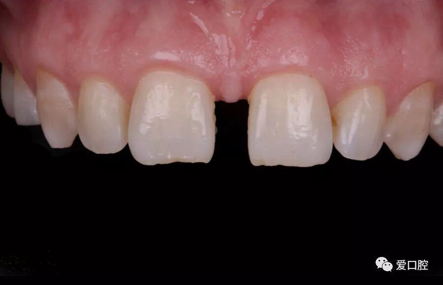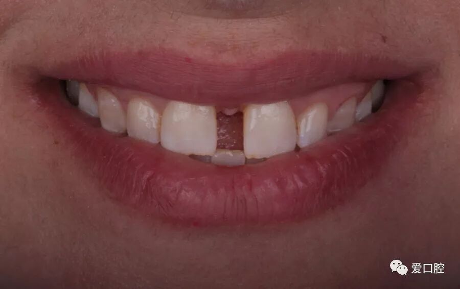 ▲一位35岁女性患者来就诊,主诉门牙牙缝太大,因为她在微笑和说话的时候常常感到很尴尬