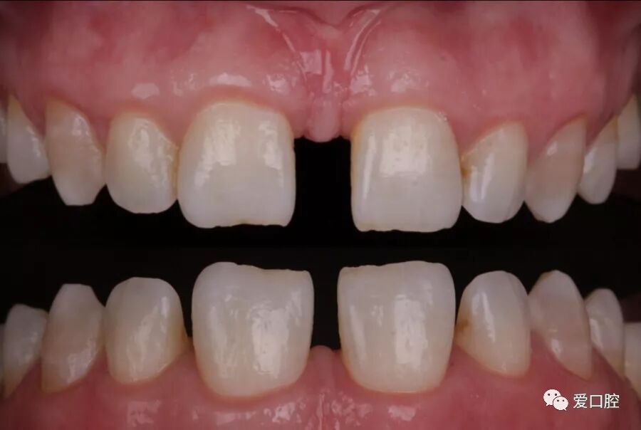 ▲那么问题来了,如果单纯靠树脂修复11、21,那么修复后的牙齿与牙齿的比例会有所不同