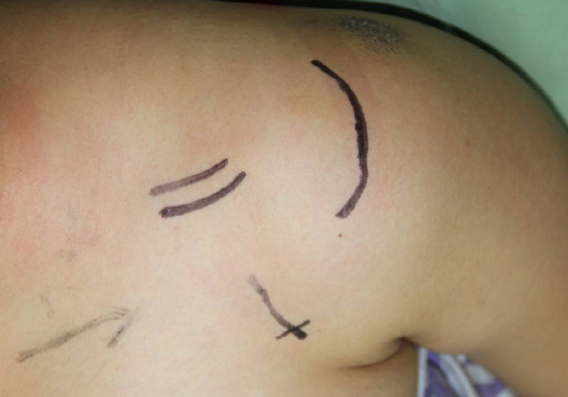 - 斜方肌和三角肌的腱性部分;