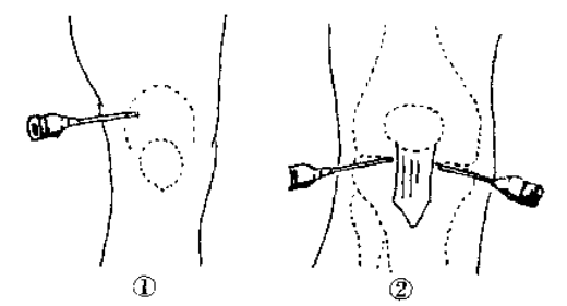 四肢关节如有积液或积脓,常常穿刺抽取检查或注入药物以治疗,对某些关节还可注入气体或药物,进行造影检查。