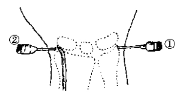 图3 腕关节的穿刺 ①尺骨茎突下;②桡骨茎突下