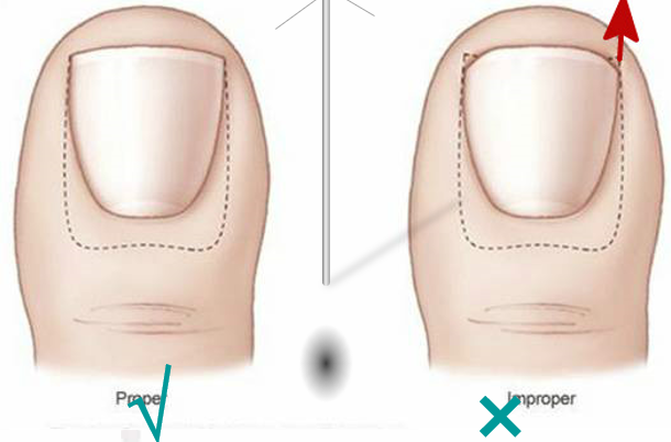 - (4)修剪趾甲不当:趾甲剪得太短,旁边的软组织因为没有趾甲覆盖就会向上长,结果趾甲长出来后就刺到软组织内,而形成嵌甲。穿不合适的鞋子不合适的鞋子如尖头皮鞋,前面太窄,会把足趾的软组织挤起来,时间久了就会形成嵌甲。有个别人有用牙咬指甲的坏习惯。因口腔细菌较多极易形成甲沟炎。