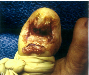 ·加深切口的背侧和跖侧直至趾骨,梭形组织最宽处为4-5mm,切除组织应该是正常、无炎症、无感染的组织;