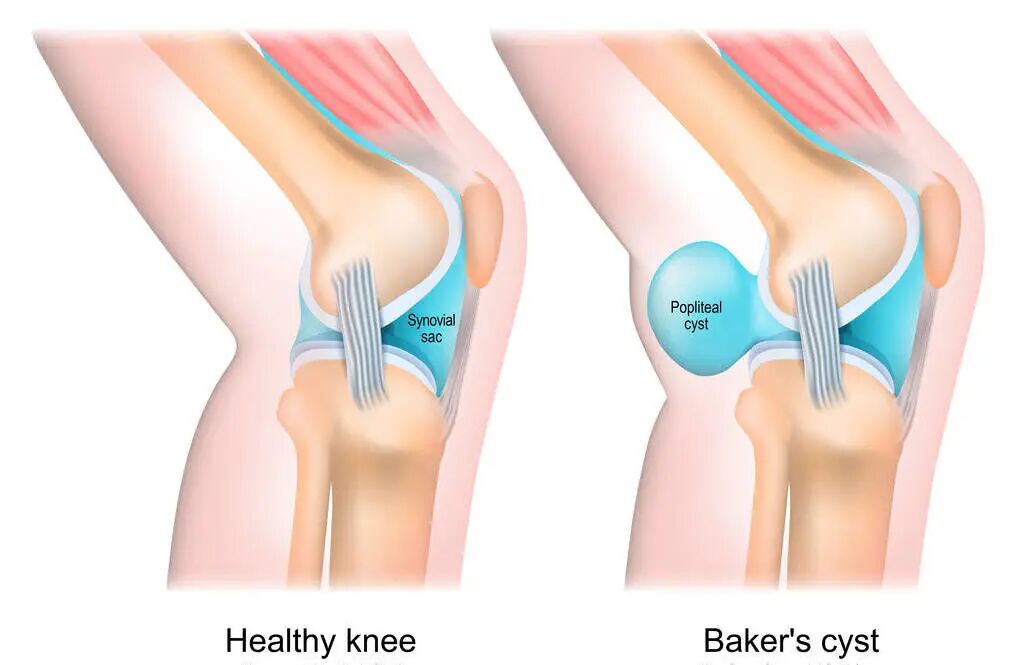 继发性腘窝囊肿绝大多数见于关节内病变,关节内的关节炎、半月板损伤或者韧带损伤,造成关节内积液,积液压力过大时,会通过膝关节后内侧关节囊的活瓣结构,挤出关节囊后,慢慢地积聚越来越大,从而形成腘窝囊肿。其中,半膜肌与腓肠肌内侧头之间的囊肿多为继发性囊肿。