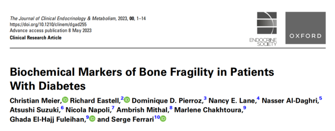 2.Meier Christian,Eastell Richard,Pierroz Dominique D et al. Biochemical Markers of Bone Fragility in Patients With Diabetes.[J] .J Clin Endocrinol Metab, 2023.