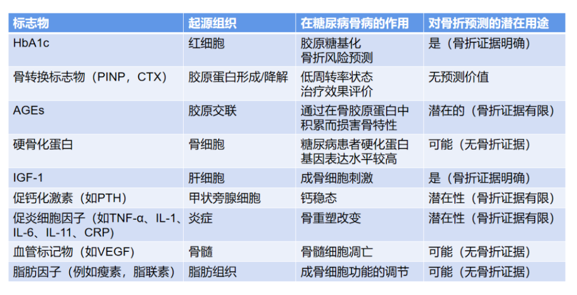 表3.糖尿病患者骨折风险评估中具有潜在作用的血清标志物