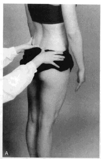 正常情况下可见髂后上棘向上并向侧方移动。如果不发生这些活动,则表示髂骨活动度下降,并且同时伴有向后的旋转或外倾。