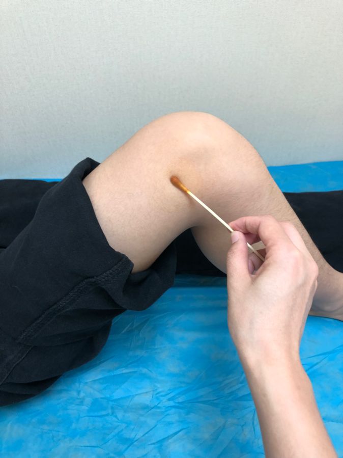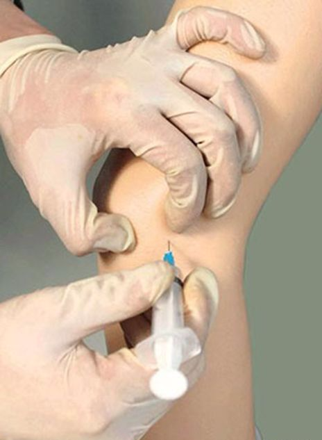 方法:用指甲定位好后,消毒患处,针头与胫骨平台平行,向内呈45度角,穿刺进入,针头完全刺入即可。