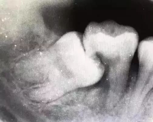 因为这种智齿水平向前直抵邻牙侧面,形成敞开式间隙,极易存留食物残渣,较难清理,时间一长就可能形成邻面菌斑并产生龋坏,邻牙即进入快速毁灭崩解期。临床上经常出现因为前倾阻生智齿而“拔一送一”的病例。
