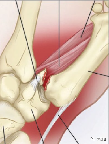 这条韧带从骨折块延伸到大多角骨,并将骨折块固定在其解剖位置。