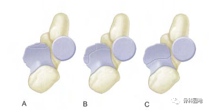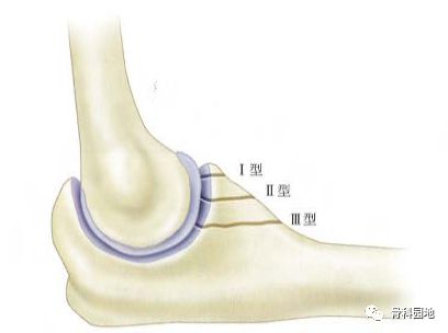 从远端观察尺骨近端,骨折线位置即为各型骨折所累及部位: