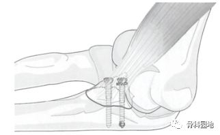 1.缝线及钢丝固定,小的冠状突骨折块可以采用缝线固定,其目的是保留前方关节囊的止点和肘关节前方的骨性支撑,而不要求将尺骨冠状突进行精确的解剖复位。