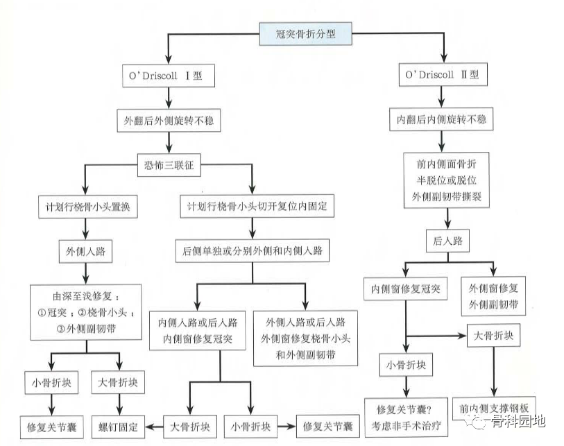 O’Driscoll分型中I型和Ⅱ型常见的处理流程: