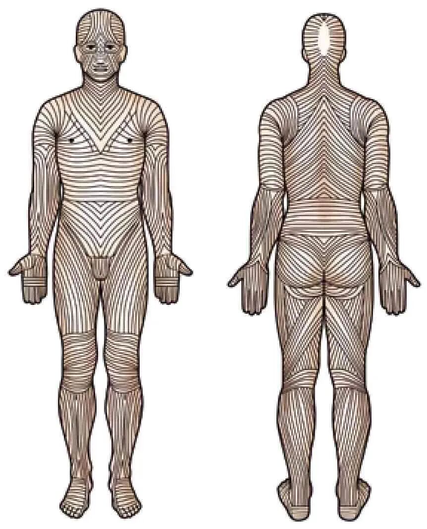 皱纹线垂直于肌肉纤维的方向,而RSTL是指皮肤内胶原、弹性纤维等形成的张力最小处。RSTL可对应于皮肤松弛后自发形成的皱纹,因此两者大致相同,但在一些区域,如眉间、鼻侧不同。
