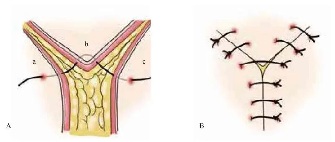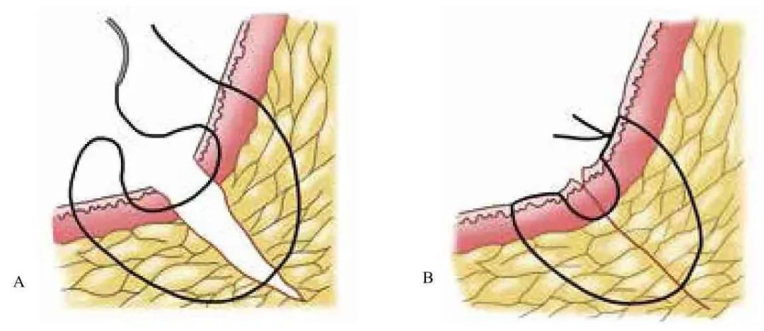 需要注意的是皮下组织韧性较低,无法提供足够的减张效果,因此在皮下缝合时可携带少量真皮组织。另外,缝合前可修剪皮缘下脂肪组织,防止组织堆积影响皮缘的对合,以及嵌插入皮缘之间影响创缘的愈合