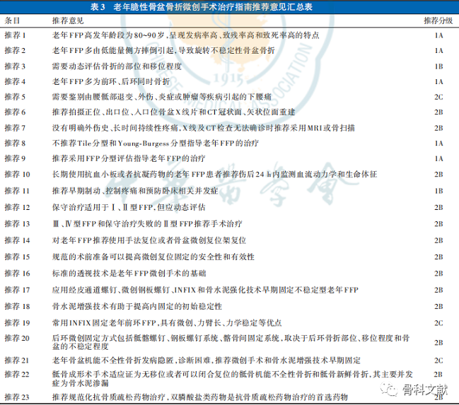 推荐8 不推荐Tile分型和Young⁃Burgess分型指导老年FFP的治疗(推荐分级:1A)。