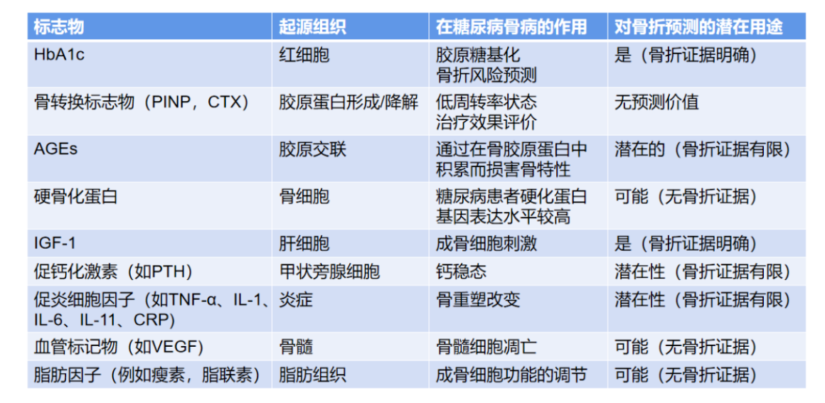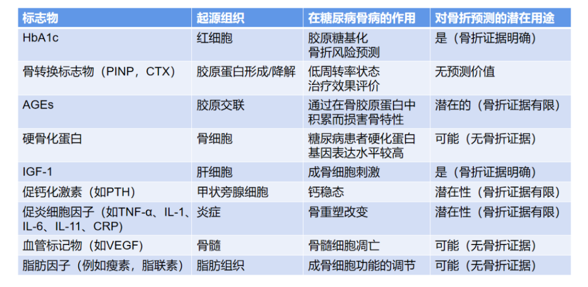 表3.糖尿病患者骨折风险评估中具有潜在作用的血清标志物