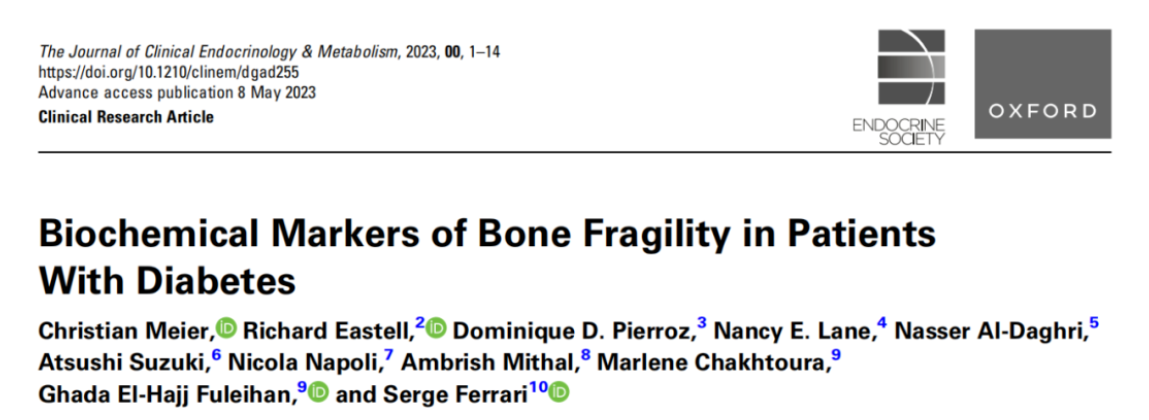 2.Meier Christian,Eastell Richard,Pierroz Dominique D et al. Biochemical Markers of Bone Fragility in Patients With Diabetes.[J] .J Clin Endocrinol Metab, 2023.