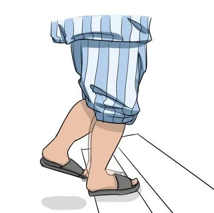 下楼梯双手撑住腋杖→ 双侧腋杖和患腿先下台阶,撑稳→健腿跟上