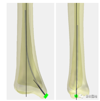 综上所述,RTN的理想入路点在内踝中点,理想入路方向在内踝解剖轴处,侧位的理想入路方向在胫骨远端干骺端解剖轴处。
