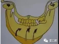 磨牙部咬合支撑的丧失是逐渐由残存的牙齿的牙齿移动和不恰当的牙齿修复体所引发的。左右磨牙以及前磨牙完全丧失的情况下,闭口时沿着上颌前牙舌面倾斜的下颌的前方牙齿接触的方向,这时髁状突非旋转地工作并被施加后方闭口力,导致髁状突的远中和上方变位,会引发下颌功能异常的肌肉症状。