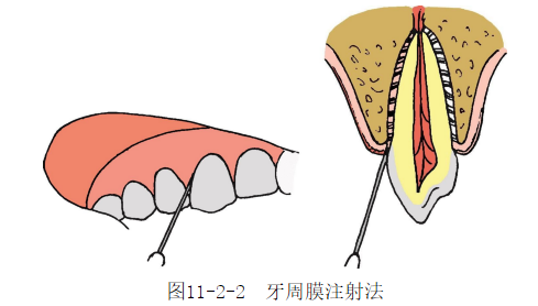 注意点:注射时比较疼痛,适用于对疼痛耐受较好者;牙周膜注射可能产生严重的菌血症,手术前后应采取适当的抗菌预防。