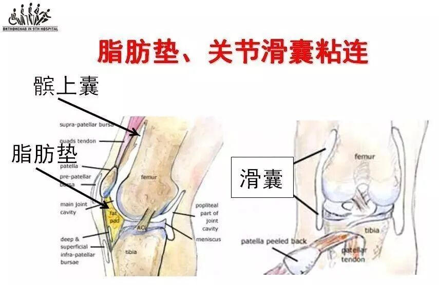 - 急性损伤——如摔跤、跌倒时,膝关节突然的过伸,脂肪垫未及时上移,嵌夹在胫股关节面之间,引起急性损伤;