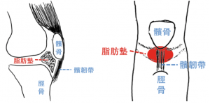 髌下脂肪垫有参与膝关节的屈伸动作,是个会随著膝关节屈伸而移动的结构。在膝盖弯曲时,脂肪垫周边的空间会比较大;而当膝盖伸直时,脂肪垫则会移动到一个比较容易被夹住的位置。