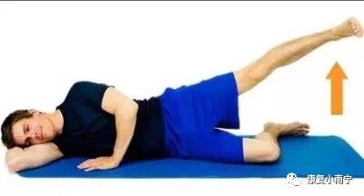 动作要领:健侧卧位,患侧下肢伸直抬高,与床面呈约45°角,训练坚持10秒,10次/组,3组/次;每日1-2次。