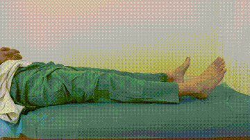 平卧位,在膝关节下方压毛巾或者枕头,抬起小腿,每次抬腿6秒,20个/组,每日6组。