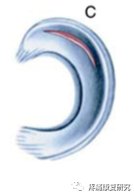 5.桶柄型为内侧半月板纵行破裂,裂口可大小各异,并有呈横裂。破裂口增厚明显,股骨髁滑膜损伤广泛,患膝常有"锁固",行走多费力费时。